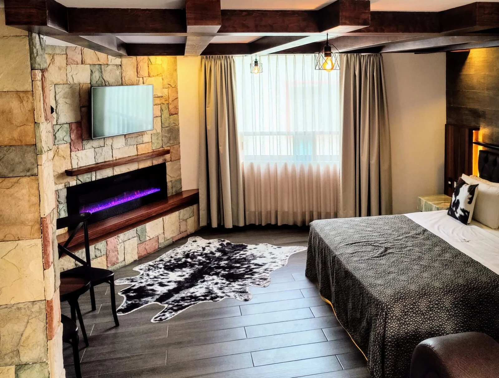 Hotel Xol-Ha nos sorprende con otra nueva habitación. En ésta ocasión un nuevo Jacuzzi con la temática de una cabaña en la montaña: vigas y paredes en madera, jacuzzi, chimenea, trofeos de caza y ventanas con vistas a las montañas nevadas.